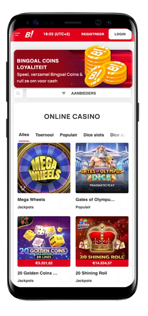 De Bingoal app geeft Belgische spelers de mogelijkheid om altijd en overal toegang te krijgen tot het online Bingoal Casino. Je kan de app in minder dan 5 minuten installeren en hierna in minder dan 10 seconden inloggen op je account. De mobiele site van Bingoal geeft je toegang tot het volledige spelaanbod van 400 digitale games en 30 live opties. De diensten zijn geoptimaliseerd voor Android en iOS waardoor je op heel wat verschillende devices de app kan gebruiken.